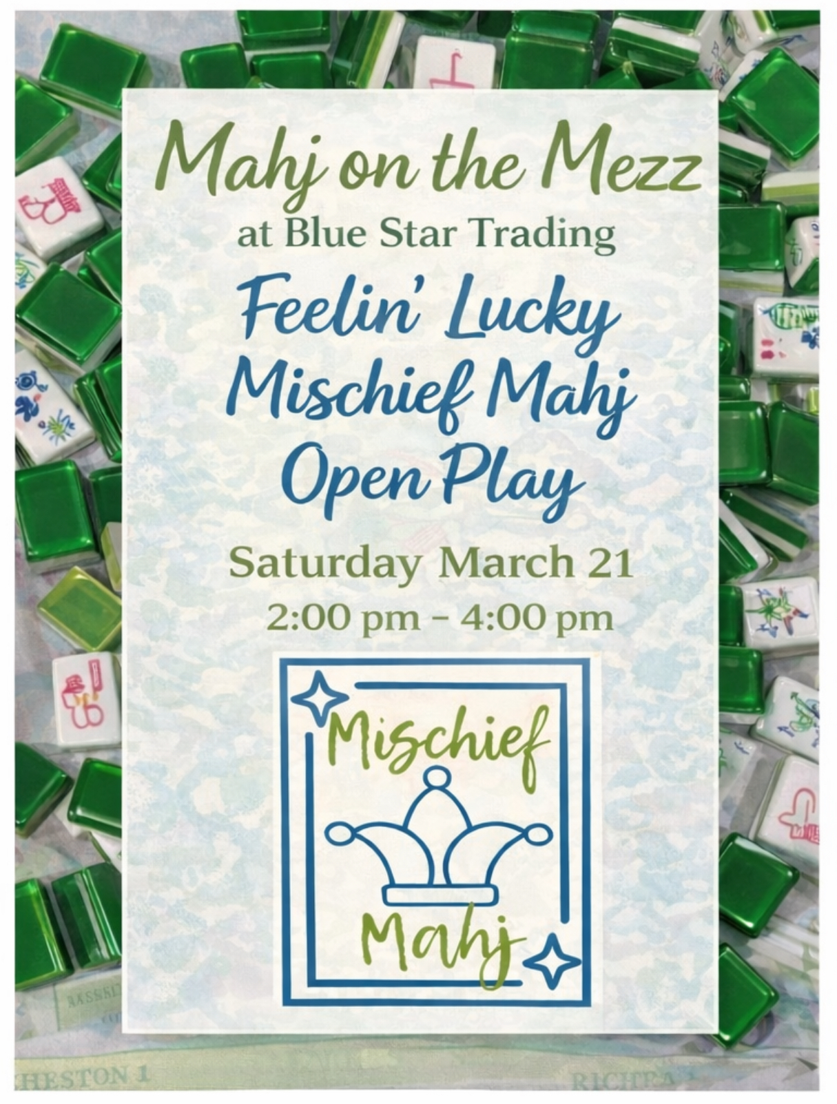 The tiles are back to Hico again! Join Mahj Awhile and Blue Star Trading for Mahjong lessons, snacks, prizes, and plenty of play!