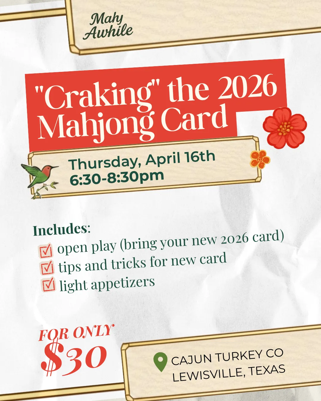 Mahj Awhile events are your new favorite gathering in the DFW area. Browse below and grab your spot... they go fast!